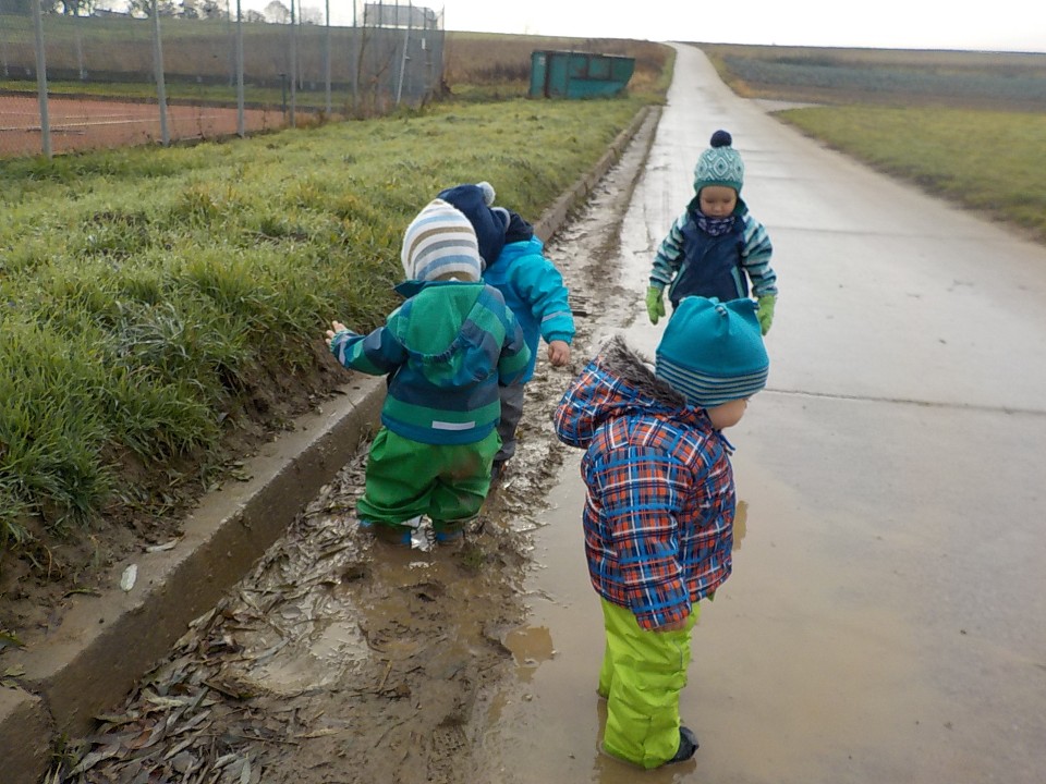 Endlich hat es geregnet und wir können gemeinsam zu den Matschpfützen spazieren. Dieses Mal hatten wir tatsächlich Glück, wir konnten uns richtig voll matschen.